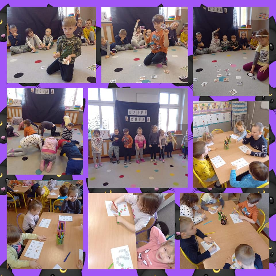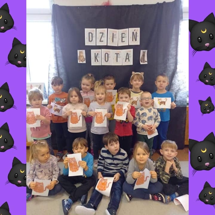 17 lutego obchodziliśmy nietypowe święto - „Dzień Kota”. W tym dniu wszystkie przedszkolaki upodobniły się do swoich czworonożnych przyjaciół, bawiąc się w ich ulubione zabawy. Następnie dzieci oglądały ilustracje przedstawiające różne koty, zapoznawały się z kocimi obyczajami oraz sposobami pielęgnacji kotów.