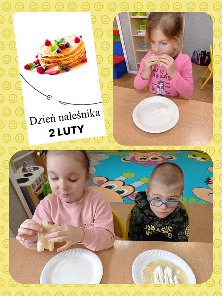 Obchodzony w tym roku 2 lutego Dzień Naleśnika był doskonałą okazją do zorganizowania w naszym przedszkolu zajęć i zabaw z jego wykorzystaniem. Tego dnia nie mogło zabraknąć także akcentów kulinarnych.