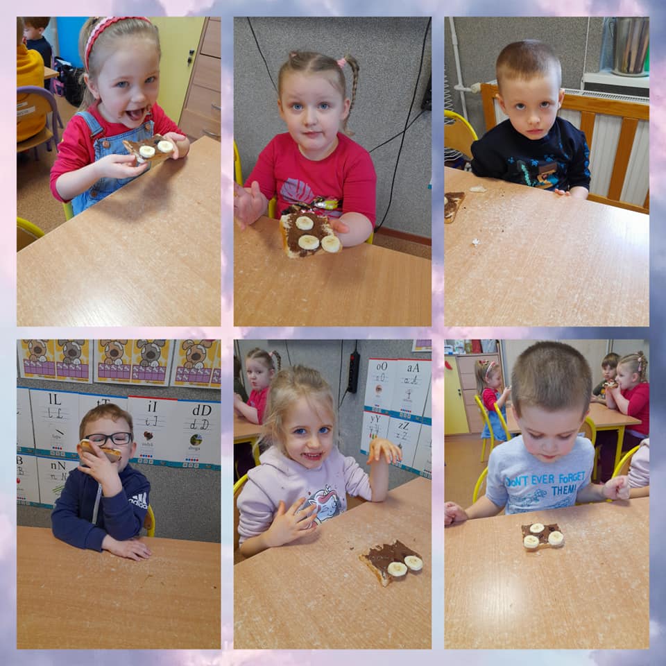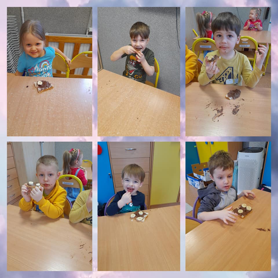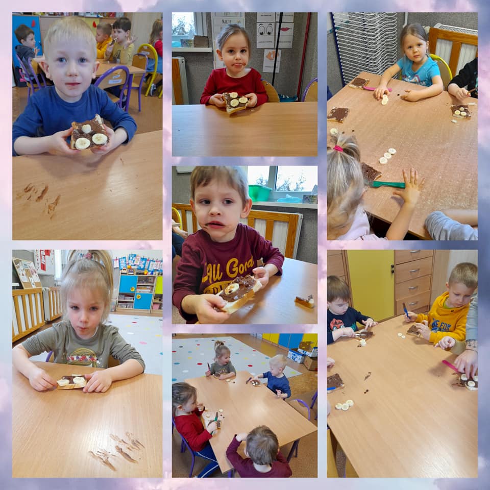 4 lutego w naszym przedszkolu zrobiło się bardzo słodko. A to wszystko za sprawą Światowego Dnia Nutelli, który przypada właśnie na 5 lutego. Święto to powstało z inicjatywy amerykańskich blogerów włoskiego pochodzenia. Święto to zostało ustanowione dość niedawno, bo w 2007 roku, ale jest obchodzone z ogromną przyjemnością, bo któż z nas nie lubi kremu czekoladowego? Tego dnia dzieci dowiedziały się z czego składa się czekolada oraz jak ją się produkuje. Po części teoretycznej dzieci przystąpiły do warsztatów kulinarnych, podczas których robiły misiowe kanapki z kremem czekoladowym i bananem.