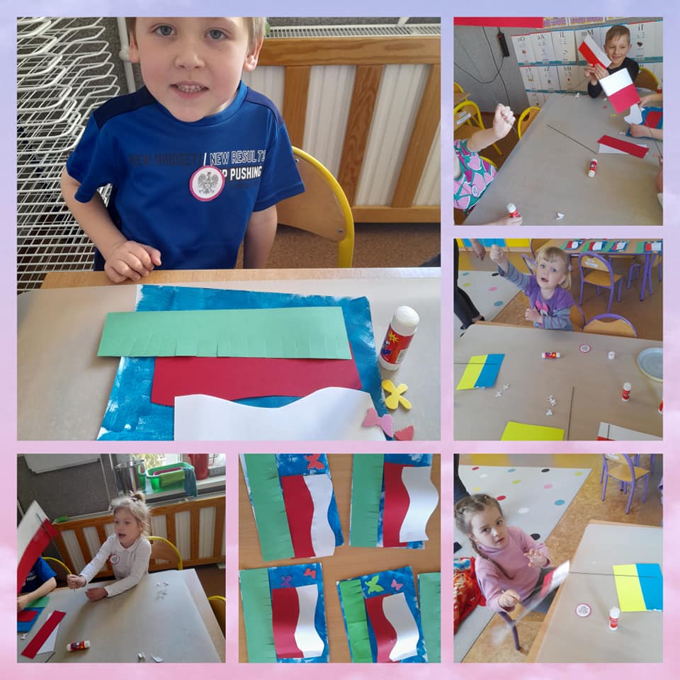 Nasze przedszkolaki wykonały patriotyczną pracę plastyczną z okazji Święta Pracy (01.05), Dnia Flagi (02.05) oraz z okazji Święta Konstytucji 3 Maja (03.05)