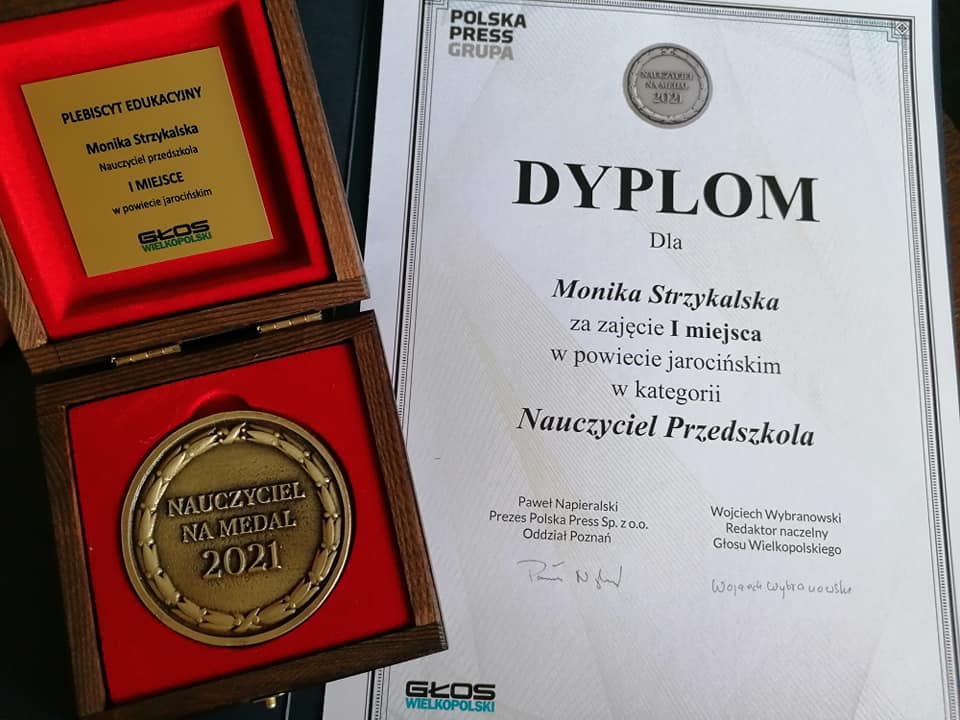 nominowanej przez Rodziców z Niepublicznego Przedszkola ,, Poziomka" w Jarocinie w plebiscycie Głosu Wielkopolskiego "Nauczyciel na medal", która zajęła