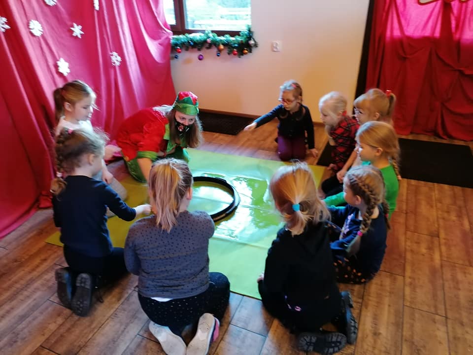 3 grudnia najstarsze przedszkolaki wybrały się do Promno-Stacji, gdzie położona jest Świąteczna Kraina, którą zamieszkują elfy oraz św. Mikołaj. Dzięki ich uprzejmości, Myszki miały okazje zwiedzić krainę, poznać tradycje świąteczne, pobawić się na dmuchanym placu zabaw i obejrzeć świąteczną bajkę. Na koniec odwiedziły pokój, w którym mogły samemu św. Mikołajowi powiedzieć o swoich najskrytszych marzeniach.