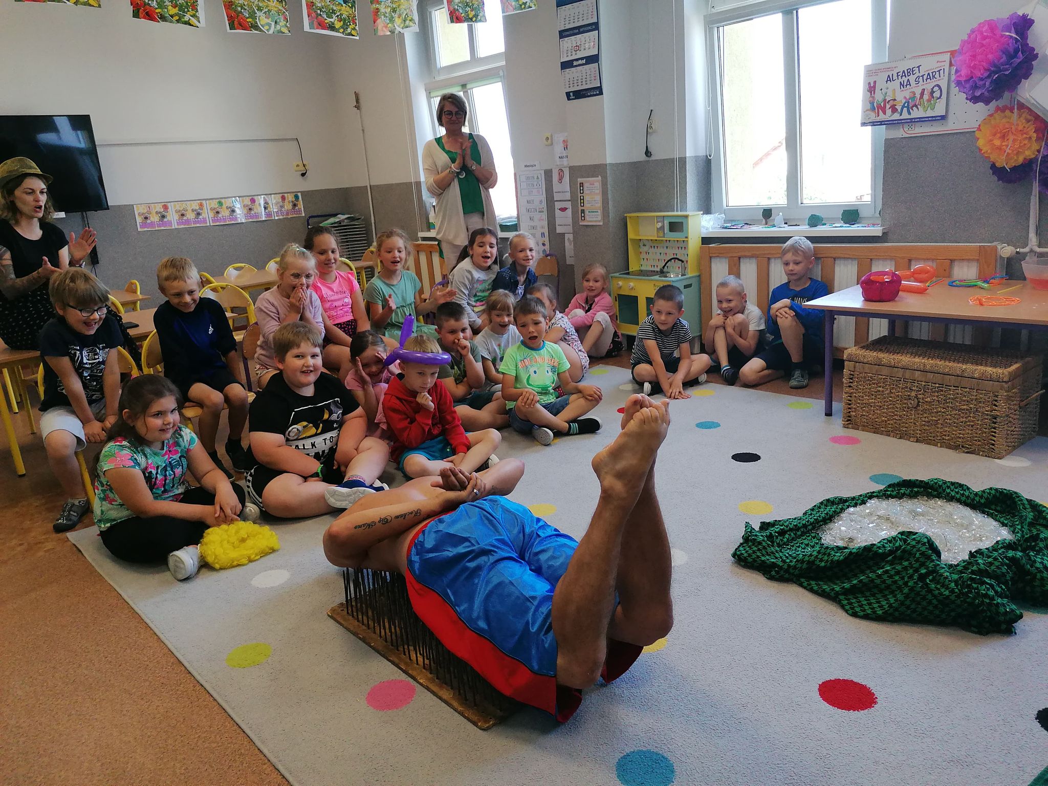 Wujek Kacper potrafi nas nie raz zaskoczyć, lecz tym razem przeszedł naśmielsze oczekiwania! Był pokaz baniek mydlanych, magiczne show a na samym końcu pokaz fakira, w których wprawił w osłupienie nawet najśmielszych przedszkolaków.
